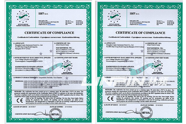 CE認證是產品進入歐盟市場所必須的安全認證,林頻儀器為順應歐盟市場需求,擴大設備出口能力,經過公司員工的共同努力,在技術儲備和管理工作進行系統完善后,公司順利通過歐盟CE認證證書。CE證書的獲得驗證了林頻儀器生產的環境試驗箱已經達到歐盟指令規定的要求,是企業對用戶的一種承諾,增加了用戶對設備的信任程度,在質量性能和安全性能方面都符合歐盟國家的出口質量標準,為公司大力開拓國際市場奠定了良好的基礎。